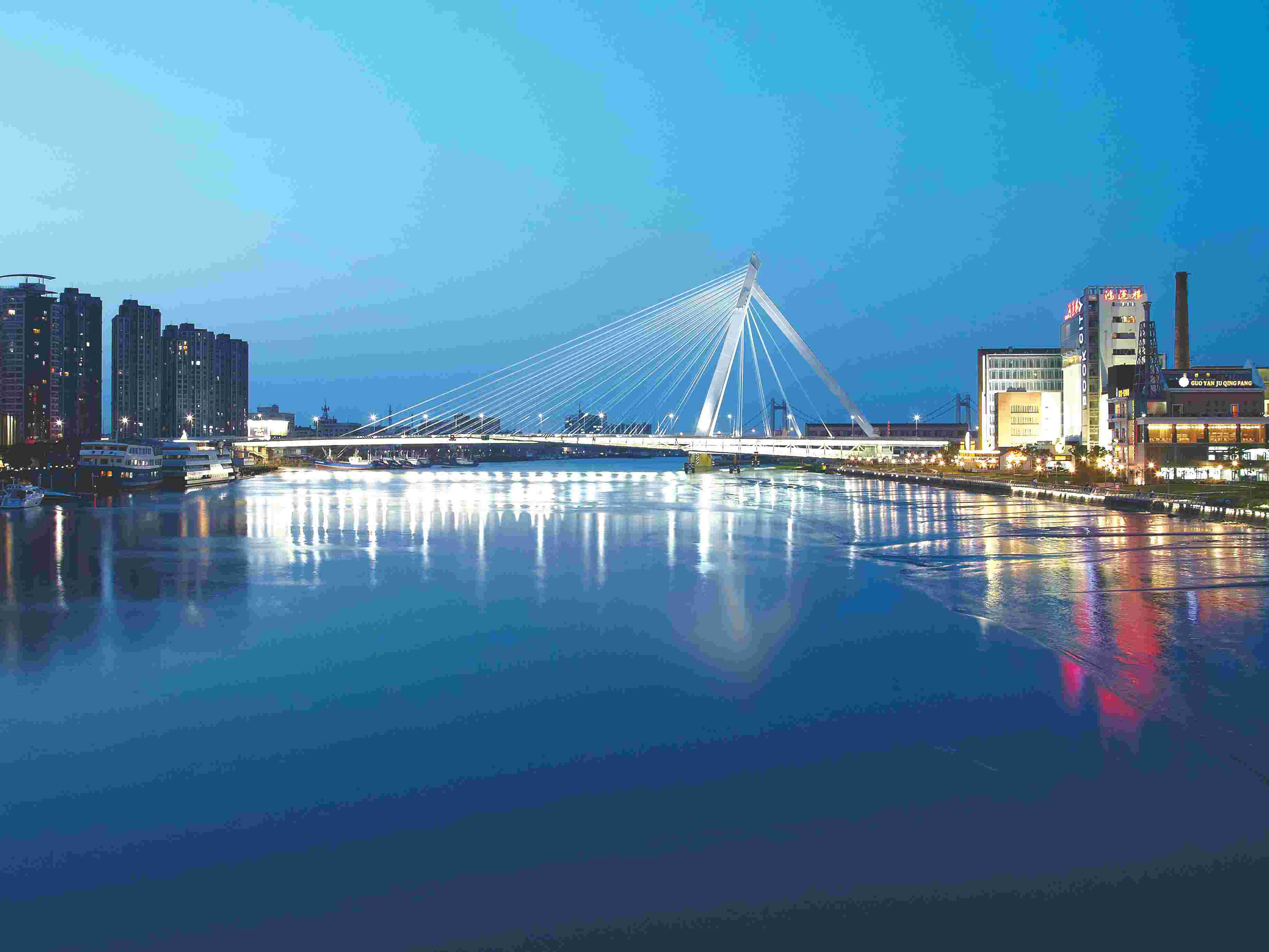 寧波外灘大橋,全長1396米,主橋設計采用國內首創的三角形獨塔四索面異形斜拉橋,造型新穎,結構復雜。