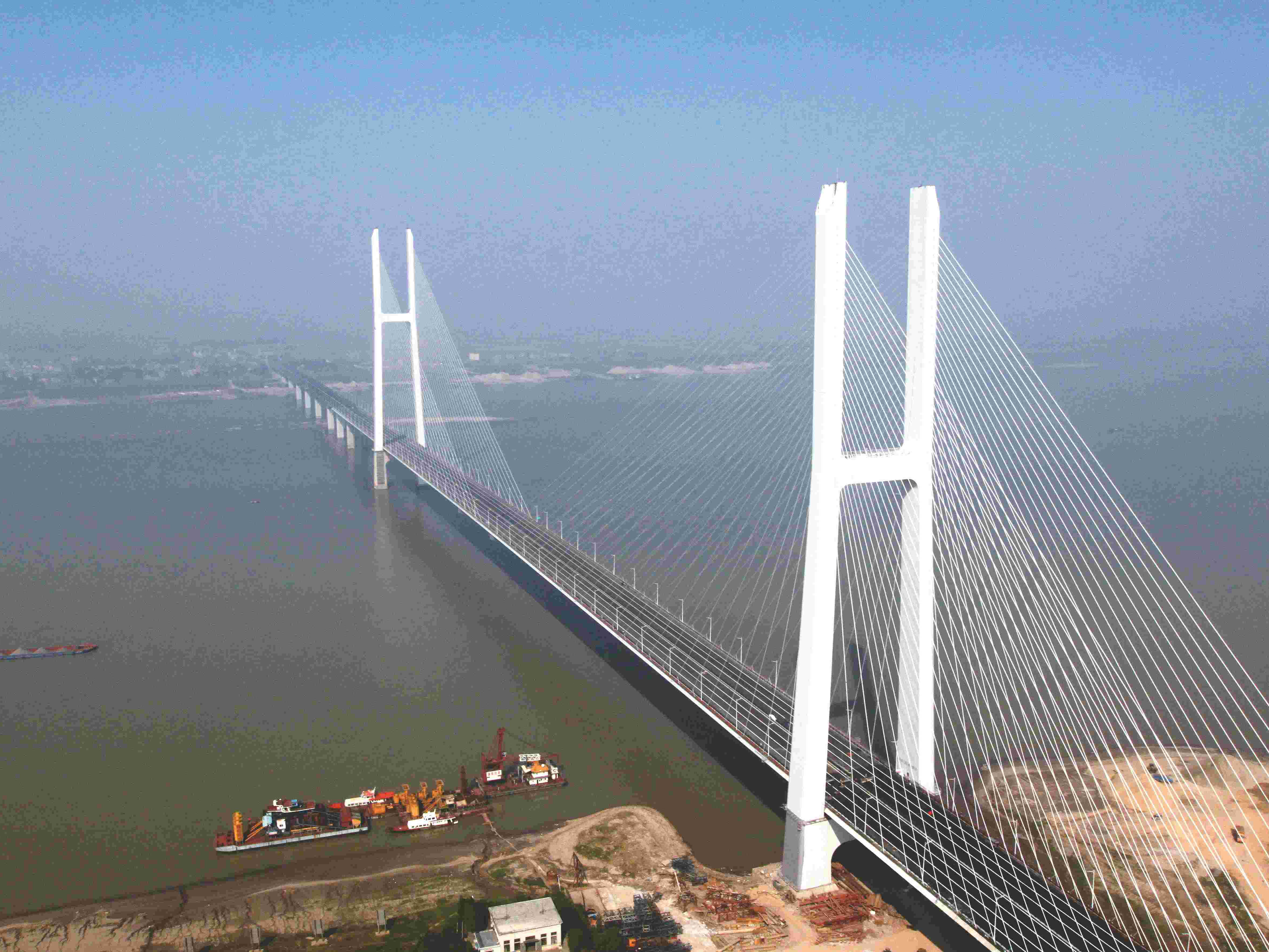 湖北荊岳長江大橋,主跨816米,南塔高224.5米,北塔高265.5米,是世界跨徑最大高低塔混合梁斜拉橋。